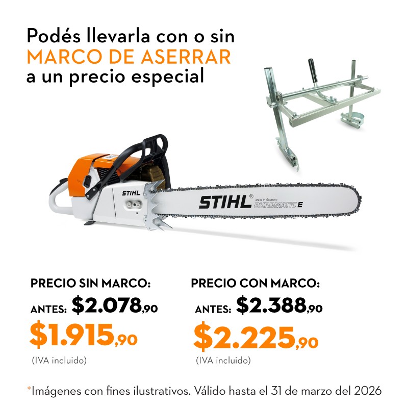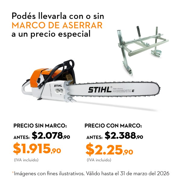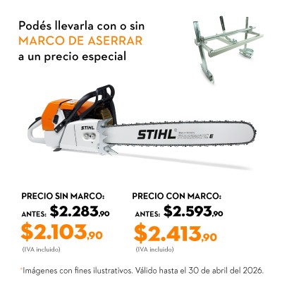 Motosierra potente, de uso intensivo para corte forestal de arboleda grande y madera dura, peso muy favorable en relación a la potencia, cuenta doble tope de garras para mejor manejo, sistema ElastoStart y válvula de descompresión, freno de cadena QuickStop de activación automática, mando confortable unificado multifuncional para el arranque, servicio y parada del equipo, sistema de filtro de larga duración con compensador y cierres de depósitos accionables sin herramienta.