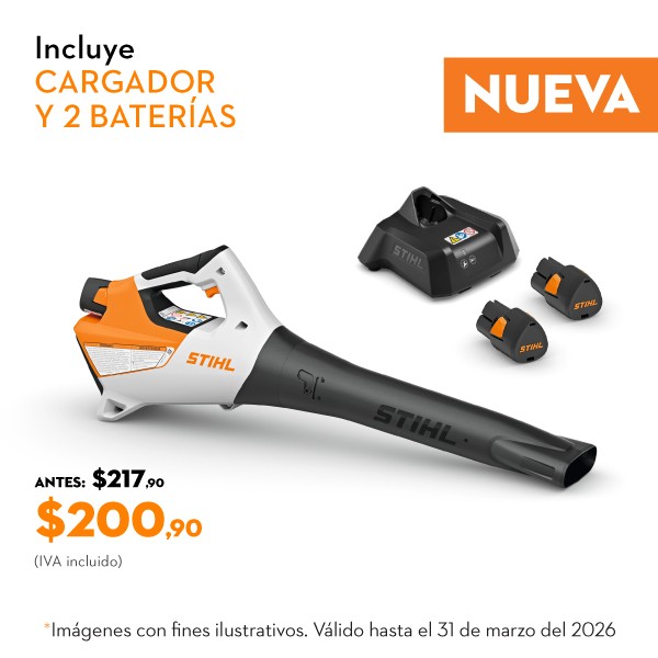 La sopladora de batería BGA 30 es flexible y ligera, perteneciente al sistema STIHL AS, te apoya en tareas de limpieza cerca del hogar. Es ideal para aplicaciones domésticas sencillas en superficies pavimentadas pequeñas o medianas, como terrazas, cocheras, entradas y balcones.