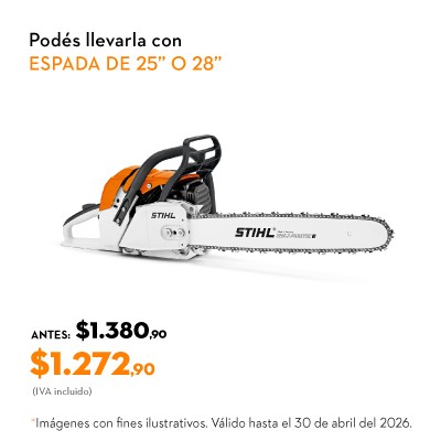 Motosierra de uso intensivo para corte forestal de árbol mediano y silvicultura, cuenta con sistema ElastoStart y válvula de descompresión, freno de cadena QuickStop de activación automática, mando confortable unificado multifuncional para el arranque, servicio y parada del equipo, sistema de filtro de larga duración con compensador y cierres de depósitos accionables sin herramienta.