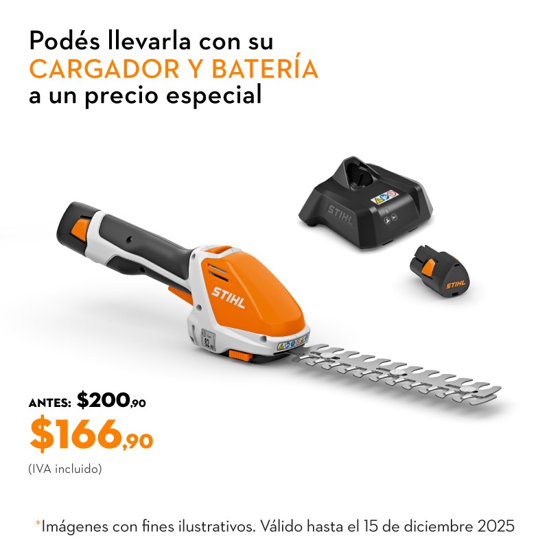El cortasetos de batería HSA 26, es perfecto para recortar y mantener los setos más pequeños y arbustos ornamentales de hojas pequeñas. Lígero y compacto, cuenta también con cuchilla de hierba para cortar bordes de zacate.