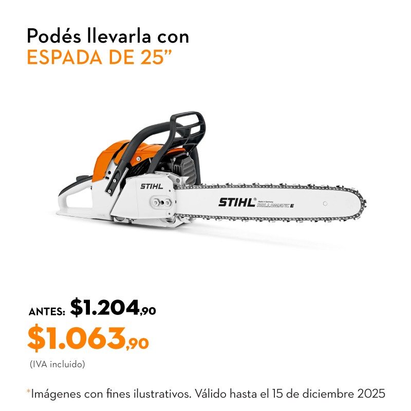 Motosierra de uso intensivo para corte forestal de árbol mediano y silvicultura, cuenta con sistema ElastoStart y válvula de descompresión, freno de cadena QuickStop de activación automática, mando confortable unificado multifuncional para el arranque, servicio y parada del equipo, sistema de filtro de larga duración con compensador y cierres de depósitos accionables sin herramienta.