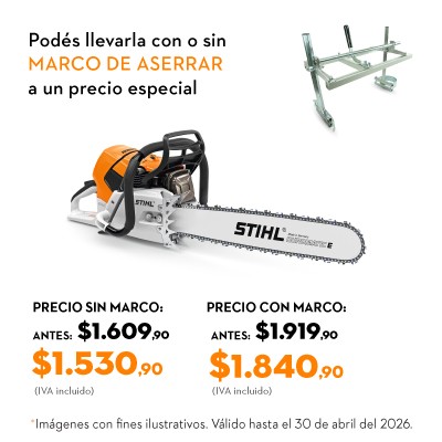 Motosierra potente, de uso intensivo para corte forestal de arboleda grande y madera dura, peso muy favorable en relación a la potencia, cuenta doble tope de garras para mejor manejo, sistema ElastoStart y válvula de descompresión, freno de cadena QuickStop de activación automática, mando confortable unificado multifuncional para el arranque, servicio y parada del equipo, sistema de filtro de larga duración con compensador y cierres de depósitos accionables sin herramienta.